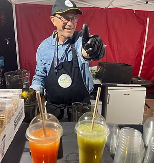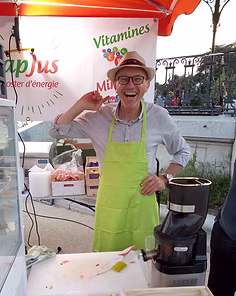 Depuis 2019, je parcours les salons bien-être et professionnels, les foires bio, et les événements festifs en proposant des jus extra-frais, produits sur place, au moyen d'extracteurs de jus à rotation lente.
